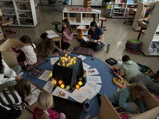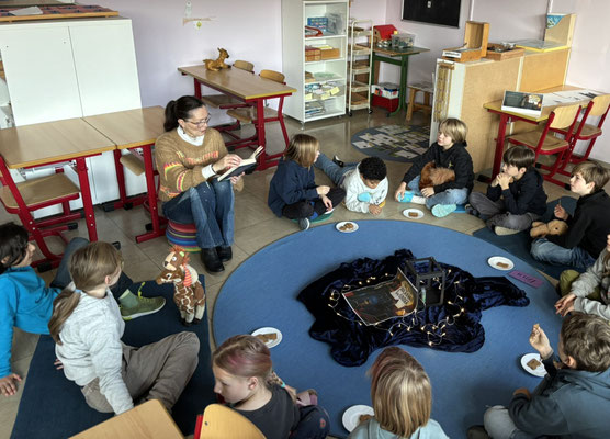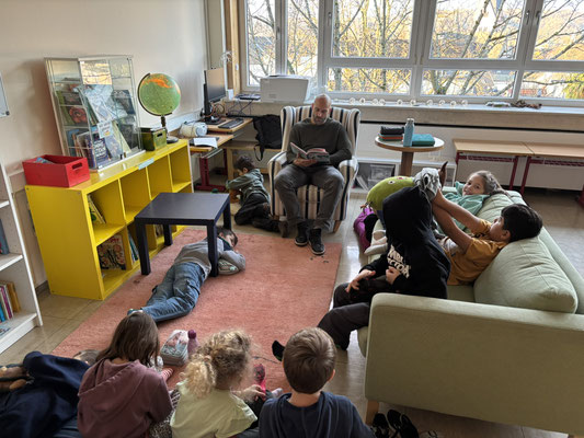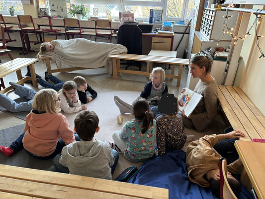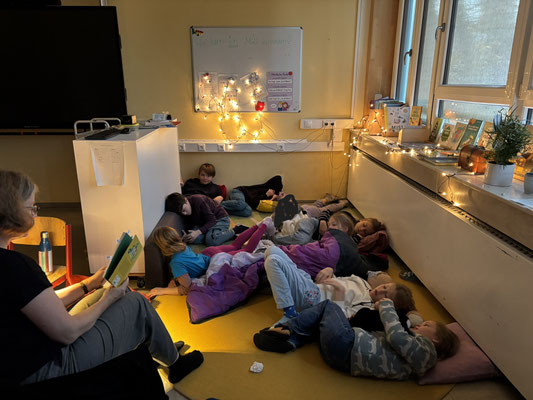 Viele Kinder unserer Schule haben ihn schon sehnsüchtig erwartet: Den diesjährigen Vorlesetag. Am Freitag, den 21.11 wurden in der 1. und 2. Stunde in vielen Räumen der Montessori-Grundschule vorgelesen. Die Räume waren toll dekoriert und Lichterketten, Kaminfeuer, Decken und Kissen zauberten eine gemütliche Atmosphäre, in welcher das Vorlesen zu einem richtigen Erlebnis wurde. Vor diesem Tag gab es wie immer viele verschiedene, bunte Bücher zur Auswahl. Jedes Kind durfte so zwischen vier Büchern wählen.