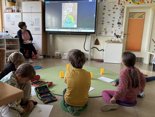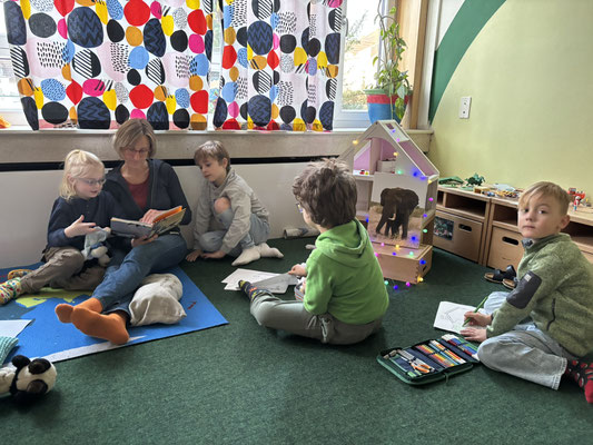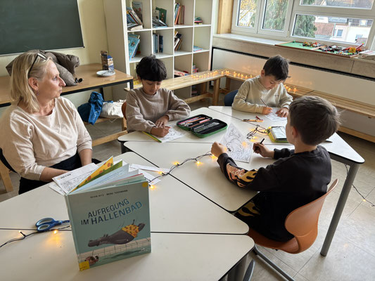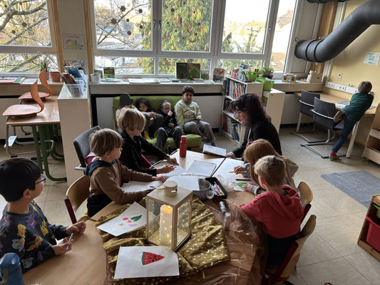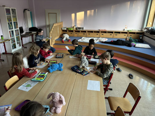 Nach dem Vorlesen gab es noch unterschiedliche Angebote, sich mit den Büchern vertiefend auseinander zu setzen: es wurde gemalt, gebastelt, genascht oder auch ein kleines Wörterbuch erstellt.